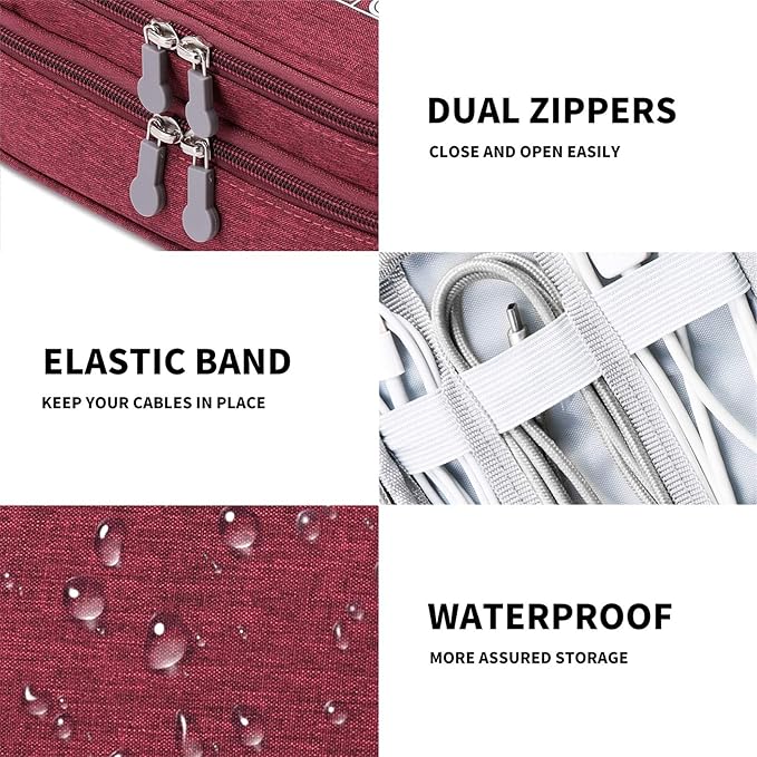 - 【PREMIUM MATERIAL】- The cable travel organizer bag is made of durable, and waterproof fabric. Well padded semi-flexible interior, excellent protection for your gadgets against scratches, dust, impacts, and accidental dropping.