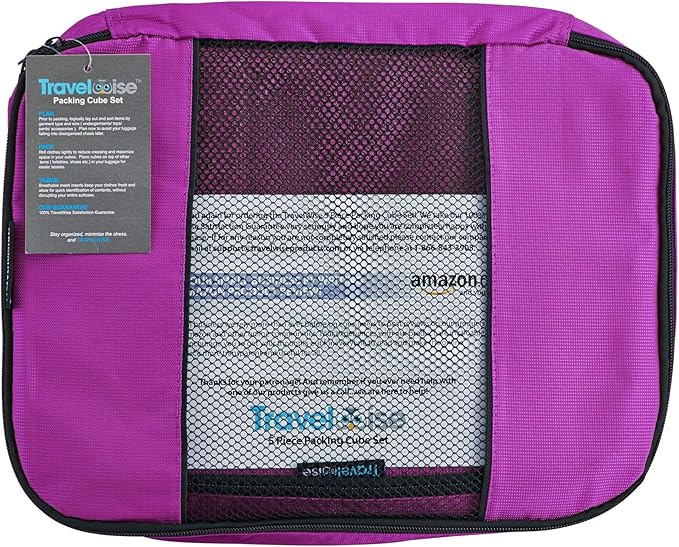 TravelWise Luggage Packing Organization Cubes 5 Pack, Pink, 1 Small, 2 Medium, 2 Large