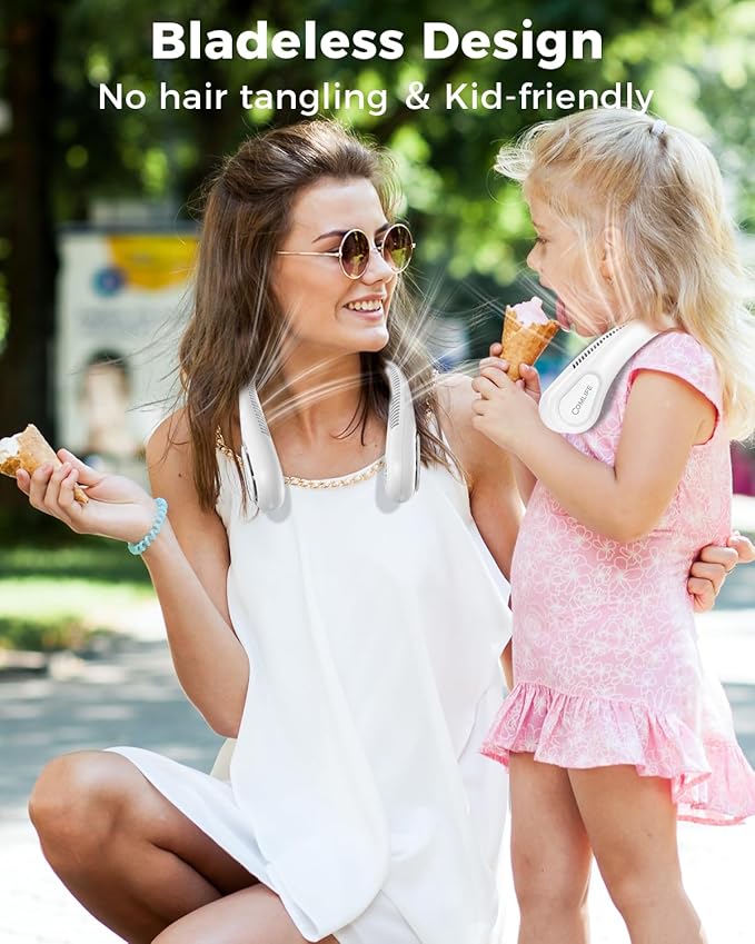 - Ergonomic Comfort: Weighing just 0.61lb, the portable neck fan features a perfectly curved design that gently hugs your neck and shoulders. This summer essential delivers lighter, more comfortable cooling all day long