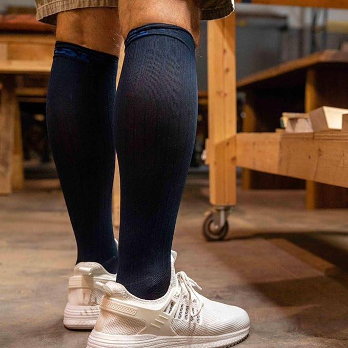 Medical Grade Compression Socks for Men & Women 15-20 mmHg by OrthoSleeve (Navy, Medium)