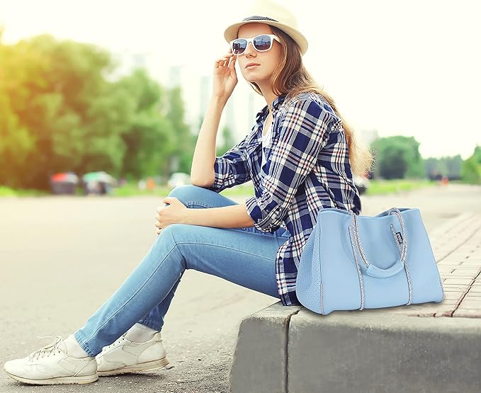- FASHIONABLE AND ELEGANT: Using the high-quality neoprene and polyester material, unique classic design style, these beach bags look particularly stylish and elegant. The same bag can be changed three styles, you have three options only pay a bag. Please look at the picture and make your choice.