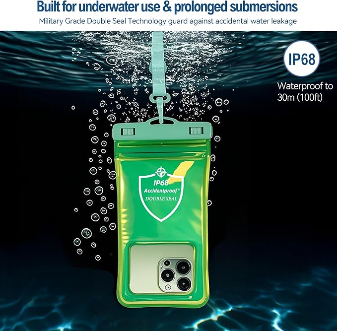 AiRunTech Waterproof Phone Pouch,Double Seal Floating Phone Case for Swimming Kayak Paddle Board,Protector iPhone 17 16 15 14 13, River Lake Canoe Boating Beach Accessories(Iridescent Green+Black)