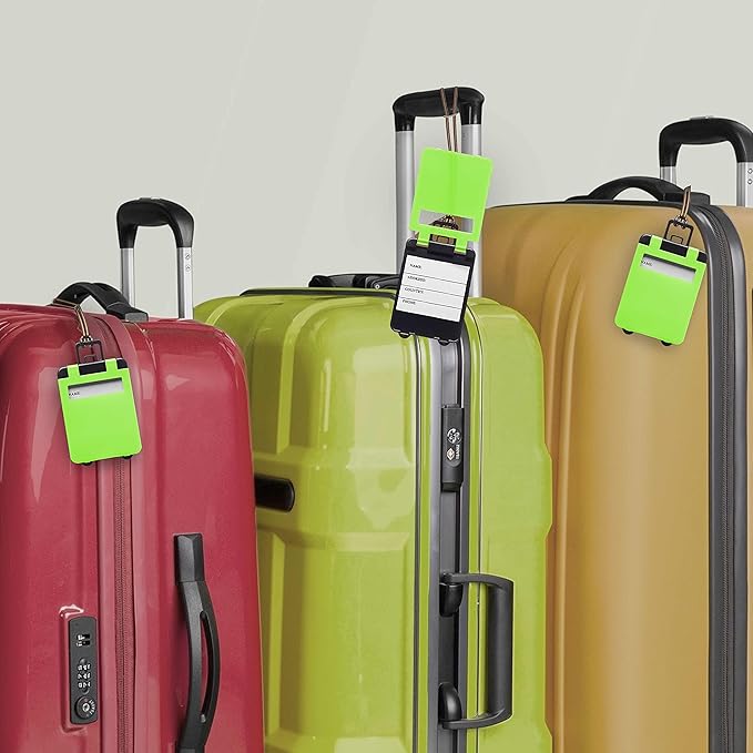 10 Mini Carry-on Luggage Tags Pack - Flip open cover, ID Sticker - Lime Green