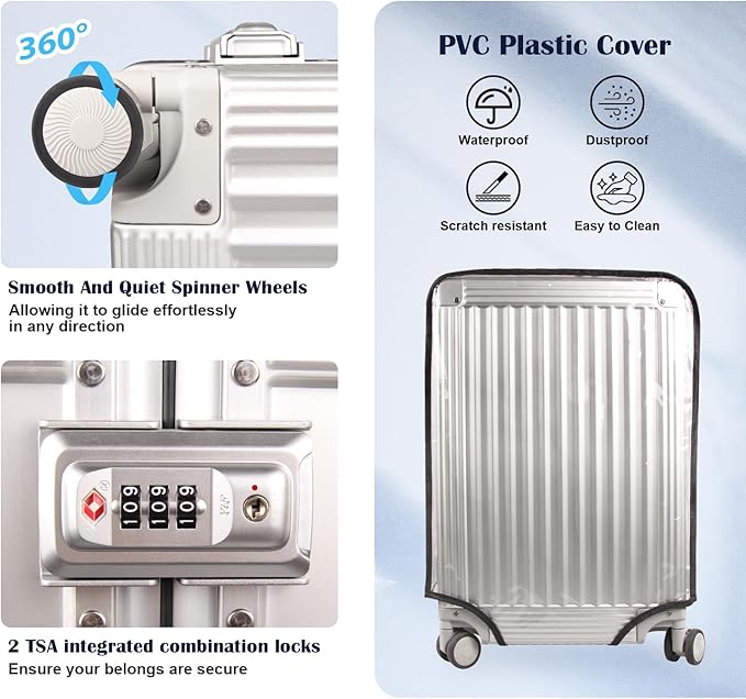 - 【PVC Plastic Cover Protection】:The 20 inch carry on luggage is fairly light and as a carry on its size is just right. There's also an outer plastic cover to safeguard against both weather and scratches. The PVC plastic cover that easily goes on and off and will protect the suitcase from scratches, especially if it needs to be checked in.