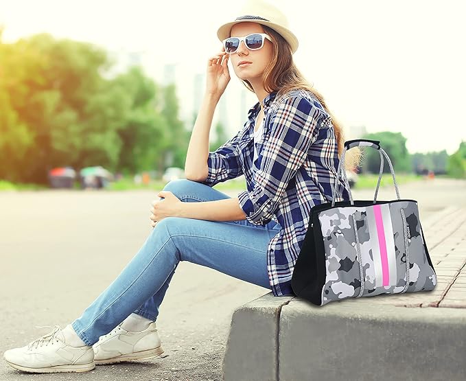 - FASHIONABLE AND ELEGANT: Using the high-quality neoprene and polyester material, unique classic design style, these beach bags look particularly stylish and elegant. The same bag can be changed three styles, you have three options only pay a bag. Please look at the picture and make your choice.