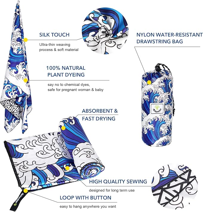 - 【100% Sand Free】Designed for beaches and camping,engineered to repel sand, ensuring that sand grains won't stick to the towel. After use, simply shake off the towel, and sand will easily fall off, making it hassle-free to clean.