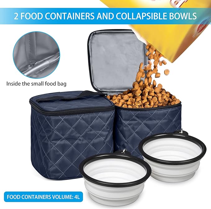 - HIGH QUALITY-The pet travel set is made of heavy-duty polyester material, filled with EPE foam,excellent tear resistance and wear resistance make it durable,has excellent waterproof performance,and excellent practicality meets your needs.