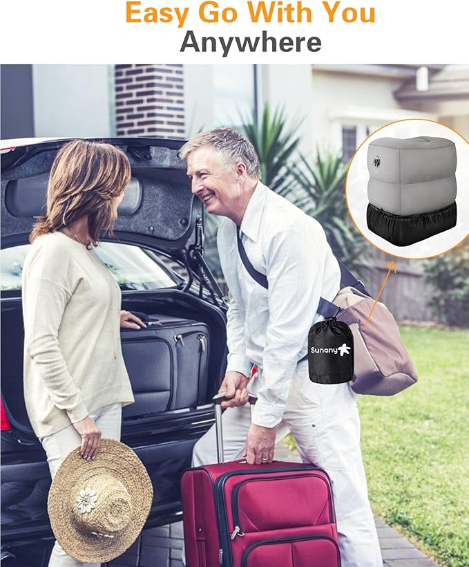 Sunany Inflatable Travel Foot Rest Pillow, Airplane Bed for Kids and Toddler, Adjustable Height Portable Elevating Leg, Trains, Cars, Home, Office (2 Pack)