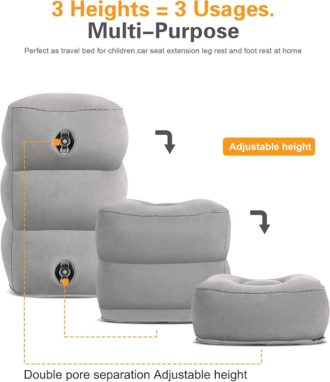 - Versatile Use: Our travel foot rest pillow can be used for foot rest in the office or at home. In airplane travel or car travel, we can use it to fill the gap to increase the rest space. Our travel pillow for kids can also be used for children to sleep and to sit and rest when tired. There are more functions for the travel footrest waiting for you to enjoy.