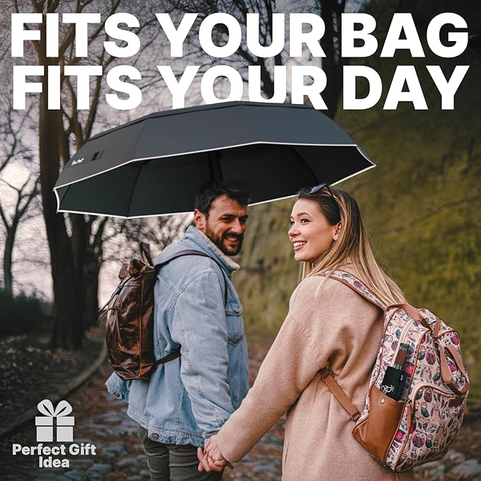 • 💪FULLY AUTOMATIC, ULTRA FAST-DRYING, and LIGHTWEIGHT - this compact folding rain umbrella is small when folded and large enough when open. The auto open/close function allows for easy one-handed operation. Measuring just 11.5" long and weighing less than 1lb the handheld classic umbrella is extremely packable in purses, briefcases, backpacks, luggage, and more. Waterproof, stormproof, and instant dry, this durable UV protection travel umbrella defends against the elements like nothing else.