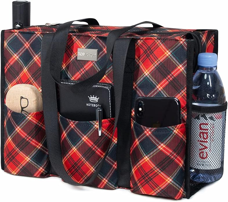 TOPDesign Utility Water Resistant Tote Bag with 13 Pockets, Top Zipper Closure & Thick Bottom Support, for Working Women