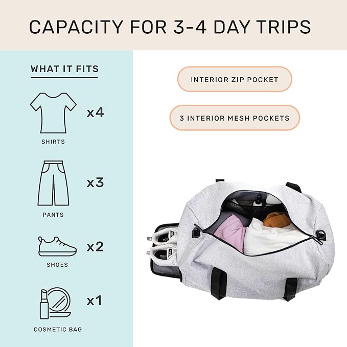 - 【Multi-functional】 Our bags are well suited to carry all of your personal items. Use it as a travel bag, yoga bag, hospital bag, maternity bag, or gym bag. It’s nice and roomy, so you can fit all your gear in one place.