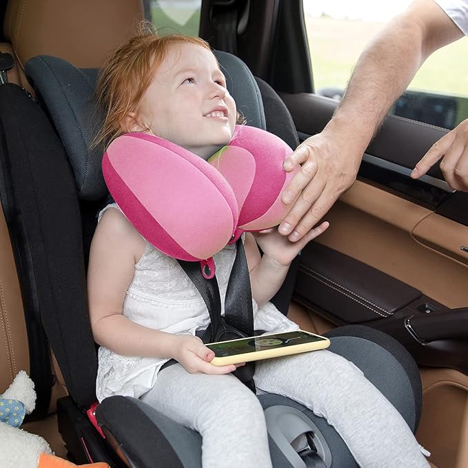 INFANZIA Kids Chin Supporting Travel Neck Pillow, Helps Support Head and Neck, Comfortably Designed for Head, Neck, and Chin Support - Gifts for Toddler/Child/Kids, Pink