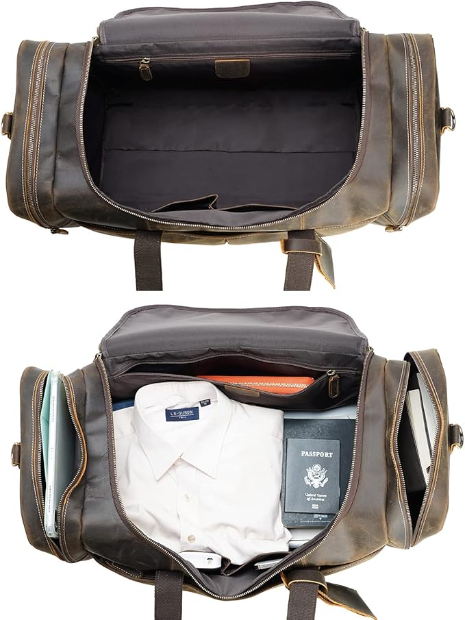 Polare 24 Inch Leather Duffel Bag for Men Full Grain Leather Travel Overnight Gym Sports Weekender Bag Large