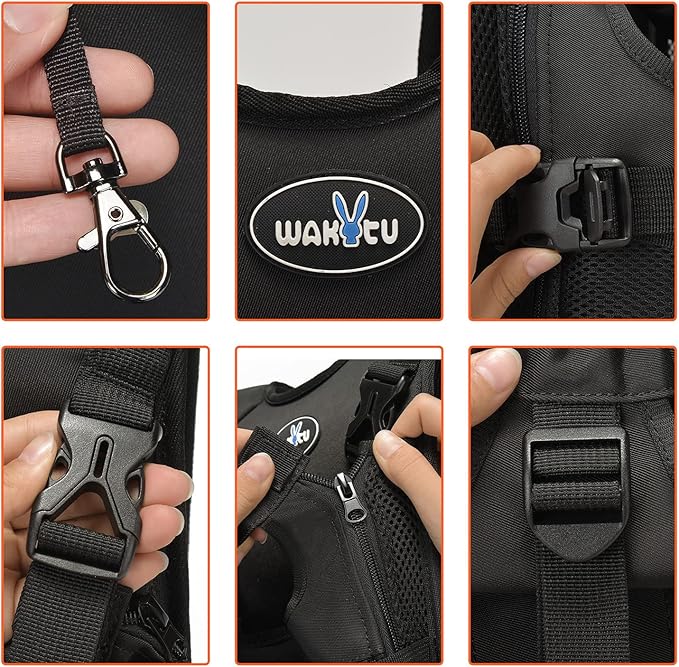 - Adjustable anti-escape design: ①Stretchable waistband and stretchable side straps for pets of different sizes. ②Adjustable front elastic band to fit pet's head height. ③Double side zippers for quick pet access; automatic zipper lock prevents pets from opening zippers.