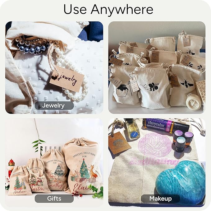 - Multipurpose Zero Waste Cloth Bags - Designed with everyday use in mind, our reusable cotton grocery bags are great bulk bin bags for toy storage, sachet bags, beach bags, and storing jewelry bags. Can also be used for culinary purposes like storing herbs or spices or straining yogurt like cheese cloth, juice, nut milk bags