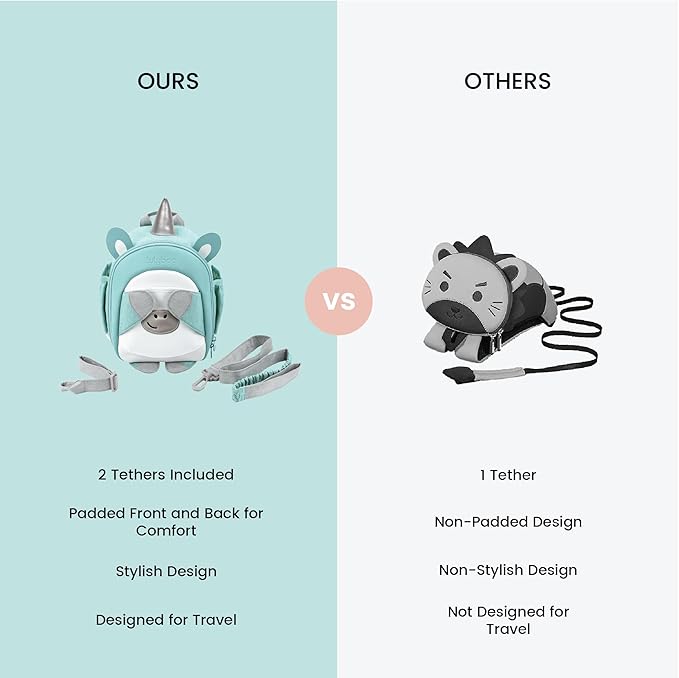 - Adjustable Comfort & Security: Equipped with a three-point adjustable harness and padded straps, this lightweight toddler backpack ensures a snug, comfortable fit while safely tethering your child, giving you peace of mind during busy outings.
