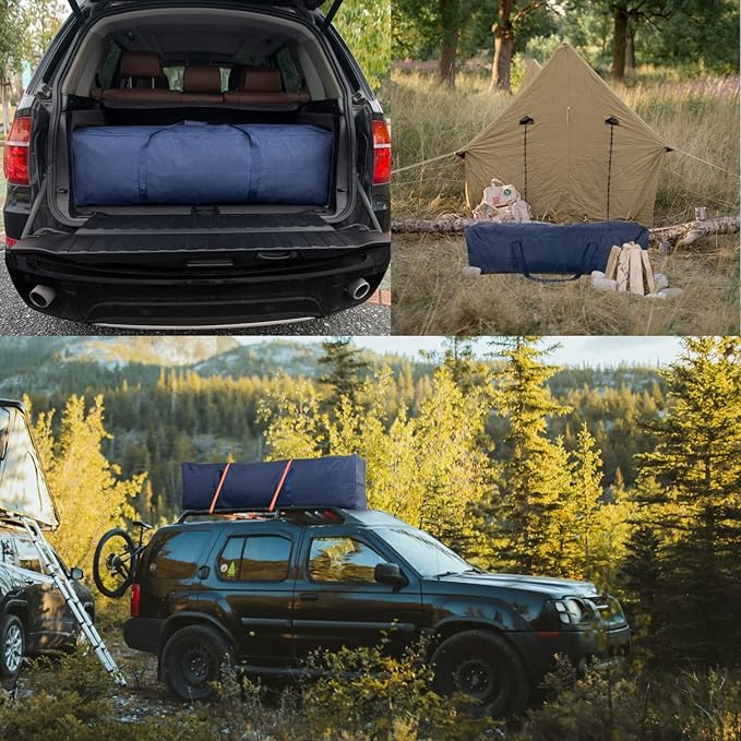 - MULTIFUNCTIONAL: It can be used for traveling, camping, workout, fencing, boating, finishing, hunting, hiking, cycling trip, self-driving trip and other outdoor activities. Enough space to store cargo, tent, equipment, sports gear, skateboard, surfing longboard, football. Besides, it can be also used for home storage such as pillows, quilt, clothes, disassembled Christmas tree etc.