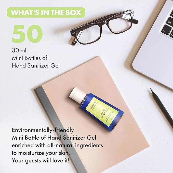 Terra Pure Hotel Hand Sanitizer Gel | Mini Hand Sanitizer Bulk | Alcohol-Free with Organic Aloe Vera | 1oz Bottles