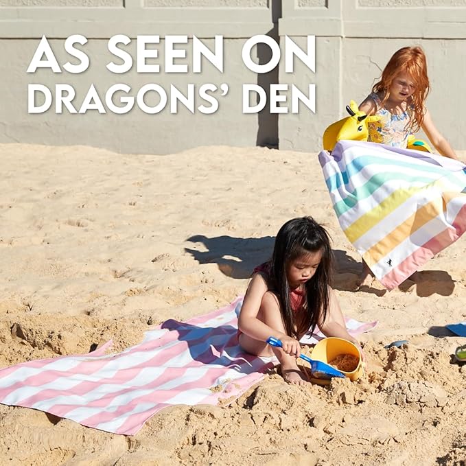 - SAND FREE BEACH TOWEL - The ultimate beach companion that leaves the sand at the beach for castles. The high-quality material means all you need to do is give it a shake and all sand will simply fall off. First seen on BBC's Dragons' Den