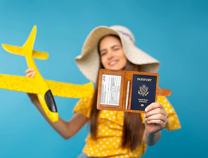- STYLISH DESIGN: Our leather passport and vaccine card holder is a magnificent product with a striking design, which can simultaneously satisfy your fashion and practical requirements. No matter where you travel, a cute passport holder is the perfect accessory to take with you. This passport holder with vaccine card slot comes 9 bright and fun colors to let you choose a color that matches how you are feeling.