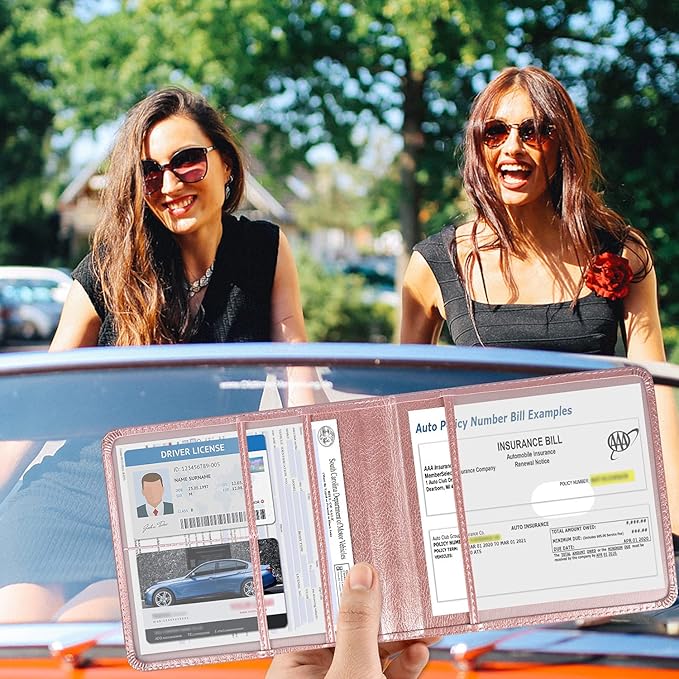 - SMART GIFT: The car insurance holder is a great gift for any car owner. This practical yet affordable car paper organizer will keep your loved ones more organized than ever before! Give your friends or family a gift that will keep them ready for emergencies, a license and registration holder for car which should be kept nearby at all times. This elegant auto registration and insurance card holder is a stylish accessory that they can use for years to come.