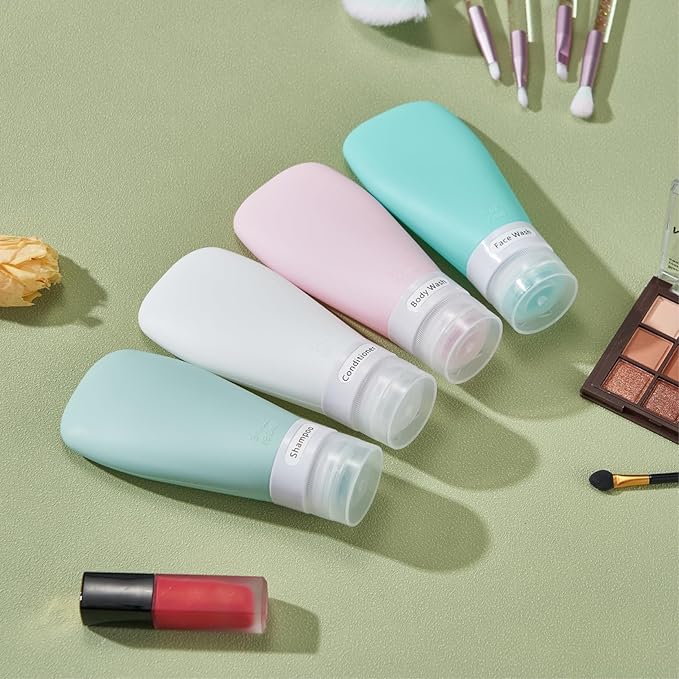 - Leakage Proof Travel Bottles: with three layers leak proof design it prevents liquid leakage or spillage, offers protection to your luggage and cloths without making a mess. Soft silicone tubes are easy to squeeze to get down to the very last drop out.