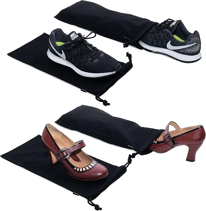 - COMPACT TRAVEL SHOE BAGS: Perfect for smaller items like flats, kids shoes, dance footwear, or cowboy boot accessories, these 8x17 cotton cloth bags fit easily into luggage, backpacks, or carry-on compartments.