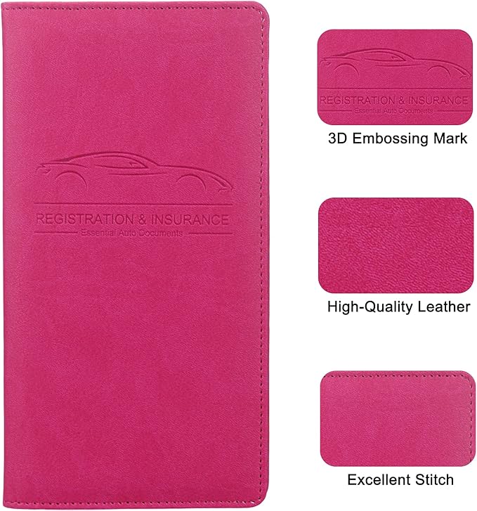 - PREMIUM MATERIAL: Car registration and insurance holder are made of high-quality PU leather and vinyl PVC. The beautiful cover of 3d embossing provides a comfortable soft touch feeling and professional look. This material is durable, Tolerant, and looks very naturally beautiful