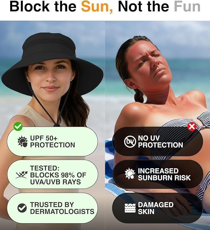 - Travel Friendly: Lightweight and packable sun hat with hidden pocket for cards, cash, or keys—perfect for safe travel; free GearTOP SunUp app helps track UV, plan outdoor time, and offers personalized sun safety tips