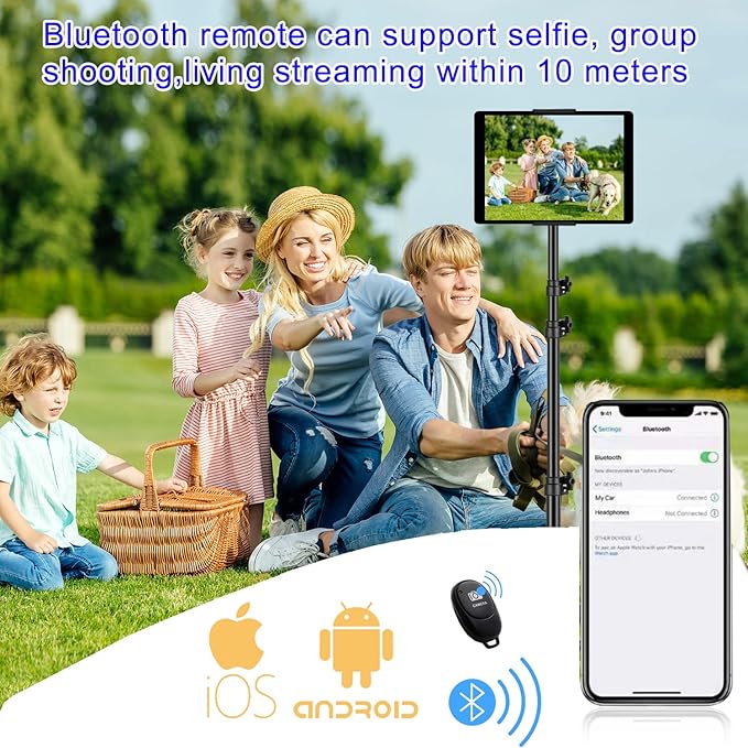 - 【Release your Hands】: The tablet tripod stand can hold your tablet and free your hands, so that make you focus on what you are doing. The tablet tripod stand can be used anywhere, such as living room, gym, kitchen, office, classroom, etc. And it is perfect for Zoom calls, online music class, family online chats, watching movies.Also, this tablet tripod holder with a Bluetooth remote. Can use the Bluetooth remote control to take beautiful pictures, record clear videos, etc.