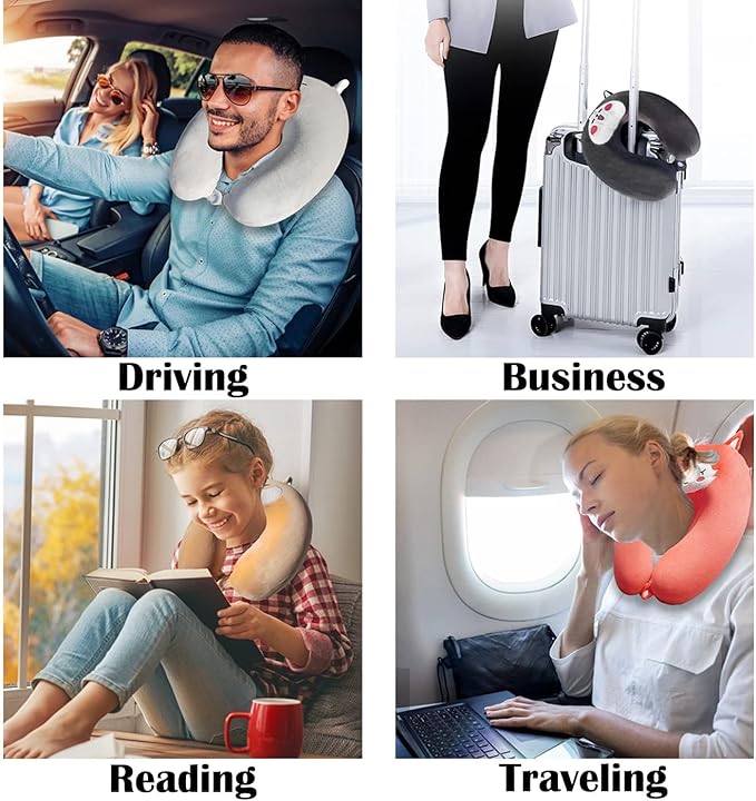 - ☃ High Quality Memory Foam Neck Pillow ☃: Our U-shaped travel pillow is made of slow-rebound memory foam, which is soft, comfortable and full of three-dimensionality. It provides soft support for the neck and also can be adjusted at any time according to the user's neck condition, and keep a close fit to better fix the head and prevent stiff neck. The surface is made of crystal soft velvet, which is skin-friendly and comfortable, soft and delicate, healthy and breathable.