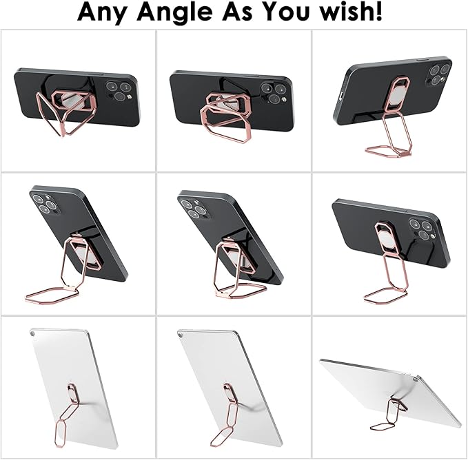 - High Quality Materials: This cell phone ring holder is made of a zinc alloy and stainless steel, durable and sturdy. With electroplating, the surface is smooth and exquisite. Compared with the traditional phone ring holder kickstand, it is not easy to fall off and has no peculiar smell.Note: NOT compatible with the Silicone/Glass/Leather/Fabric surfaces, may also NOT compatible with curved/frosted/3D/pump phone cases, check your phone’s/case’s material first!!!