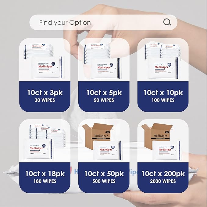 Mediwiper 10 Count Alcohol-Free Sanitizing Wipes Disinfecting Large Unscented Wet Wipes Bulk, Hand Sanitizer (10 Wipes, 100 Wipes (10 * 10))
