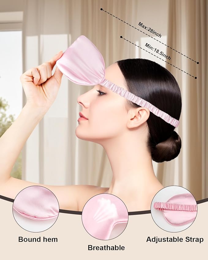 - Quite Thoughtful Designed:This silk sleep mask keeps the light out very well even though it's not black color. The silk sleep mask fit well no matter what's the size of your head.Fit for men, women & kids.