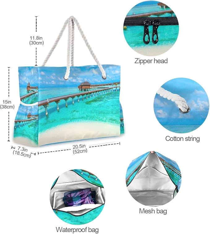 - RIP-STOP FABRIC & WATERPROOF: The beach bag is made of RIP-STOP canvas cloth which is ideal fabric for beach bags. It is Sturdy and Resistant to Rips and Water.The outer is also easy to clean: simply spray water/detergent and wipe for most stains.