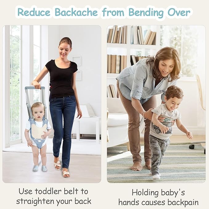 - Reduce Backache From Bending Over: With our handheld baby walking helper, you can easily assist your baby’s walking without bending over, reduce backaches from bending over while holding baby’s hands. Enjoy more quality family time with your baby