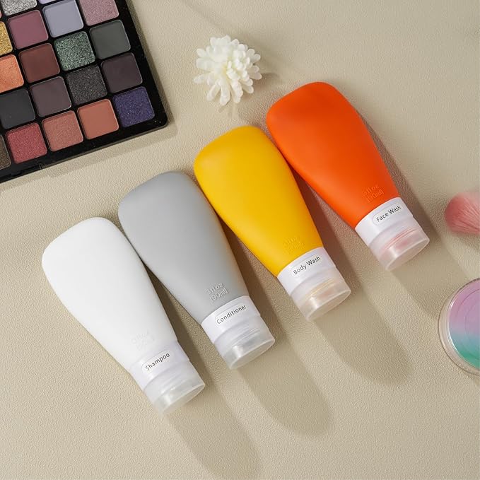 - TSA Carry on Approved: 4 pack 3 ounce silicone travel bottles, perfect for shampoo, conditioner, body wash, lotion, hand sanitizer, shower gel. Packed with a high quality zippered clear toiletry bag, saving space, easy to carry with for travels or gym workout.