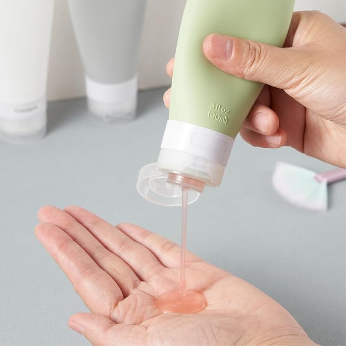 - Leakage Proof Travel Bottles: with three layers leak proof design it prevents liquid leakage or spillage, offers protection to your luggage and cloths without making a mess. Soft silicone tubes are easy to squeeze to get down to the very last drop out.