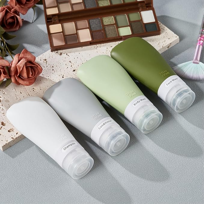 - TSA Carry on Approved: 4 pack 3 ounce silicone travel bottles, perfect for shampoo, conditioner, body wash, lotion, hand sanitizer, shower gel. Packed with a high quality zippered clear toiletry bag, saving space, easy to carry with for travels or gym workout.
