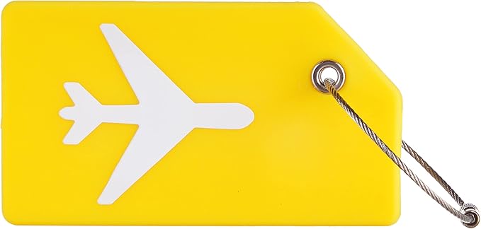 Gostwo 2 Pack Silicone Luggage Tags for Suitcases, 26 Initial Letter Baggage Labels Handbag School Bag Suitcase Instrument Tag with Stainless Steel Loop(Yellow)(Airplane)