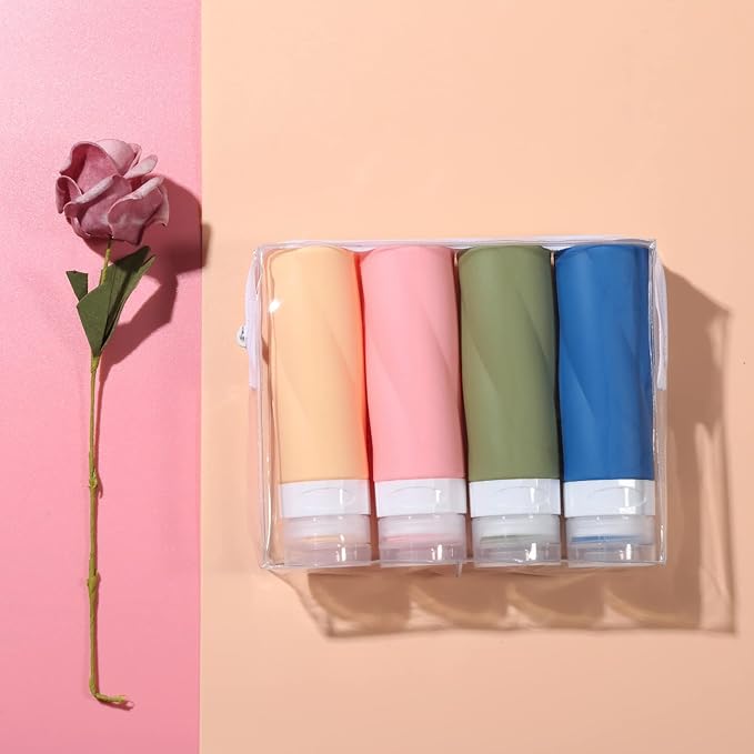 Gemice Travel Bottles - 3oz TSA Approved Containers, BPA Free, Leak Proof, Refillable, Clear Toiletry Bag (4 Pack)