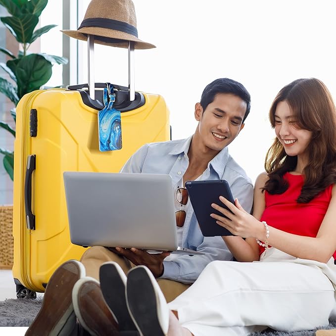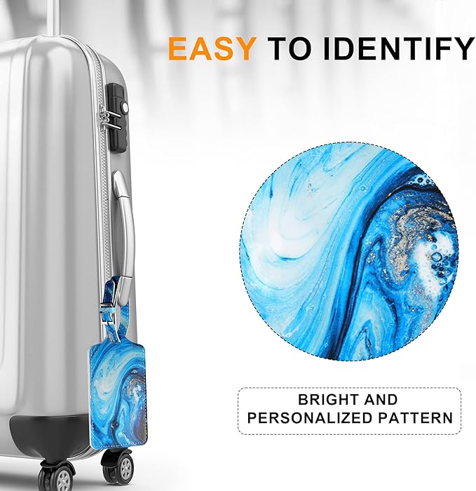 - EASY TO IDENTIFY: Our personalized luggage tags have a unique design, making it easy to spot your luggage on the baggage carousel. DOUBLE-SIDED INFORMATION CARDS: You can write two different addresses on the front and back of the luggage name tags.