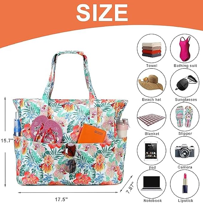 - Large beach bag in size 17.5*7.87*15.75 inches for women ladies to go to beach or pool, with smart design wet compartment to hold dirty clothes and wet towels after sports