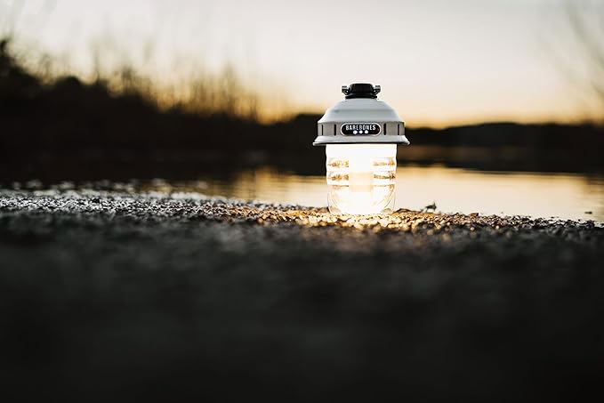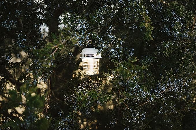 Barebones Beacon Hanging Light – Vintage White, Rechargeable LED Camping Lantern with Adjustable Brightness – Weatherproof Vintage-Style Hanging Lantern for Outdoor Adventures and Year-Round Use