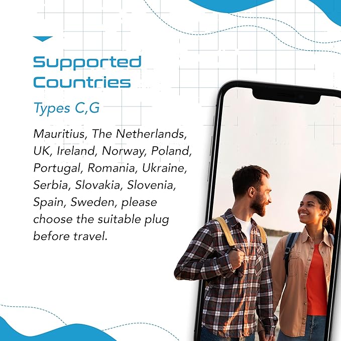 - Plug Format : C, G - Europe, UK