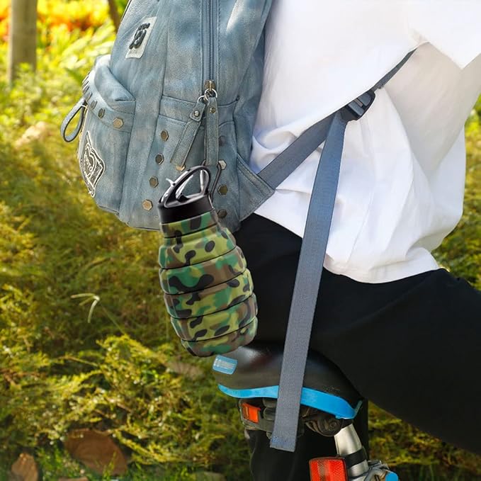 QiCheng&LYS Collapsible Water Bottle Sports Bottle 19.5OZ/580ml Travel Water Bottle for Men Women Kids. BPA Free Food Grade Silicone. (Army green camouflage)