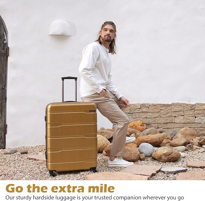 - The suitcase benefits hugely from its ABS+PC hard plastic shell. it goes through insanely strict quality control test standards, creating strong and sturdy pieces that can withstand any forms of rough handling.Please note this luggage is sold separately, but If you intend to buy two or three suitcases, the small suitcase can be stored inside the bigger one