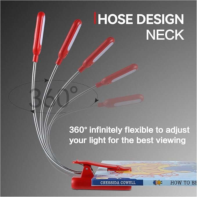- 【360°Flexible Goose Neck & Non-slip Clip Design】- The Vavofo's reading light has the 360 degree adjustable neck with multi use non-slip clip which allows you to position the light exactly where you need it, creating the perfect private reading space for you while reading in bed, in college dorm, or on a plane, train, or bus. It can also be placed on the tabletop, work surface, etc. The lightweight, portable, & travel-friendly only 2.59 oz weight.