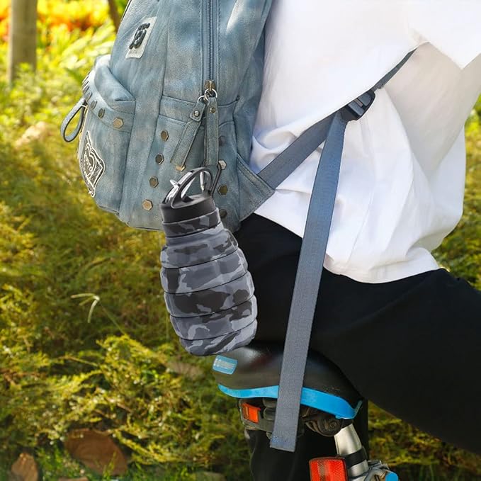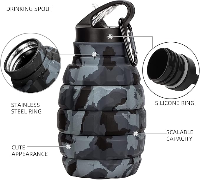 QiCheng&LYS Collapsible Water Bottle Sports Bottle 19.5OZ/580ml Travel Water Bottle for Men Women kids. BPA Free Food Grade Silicone. (Dark gray camouflage cup)